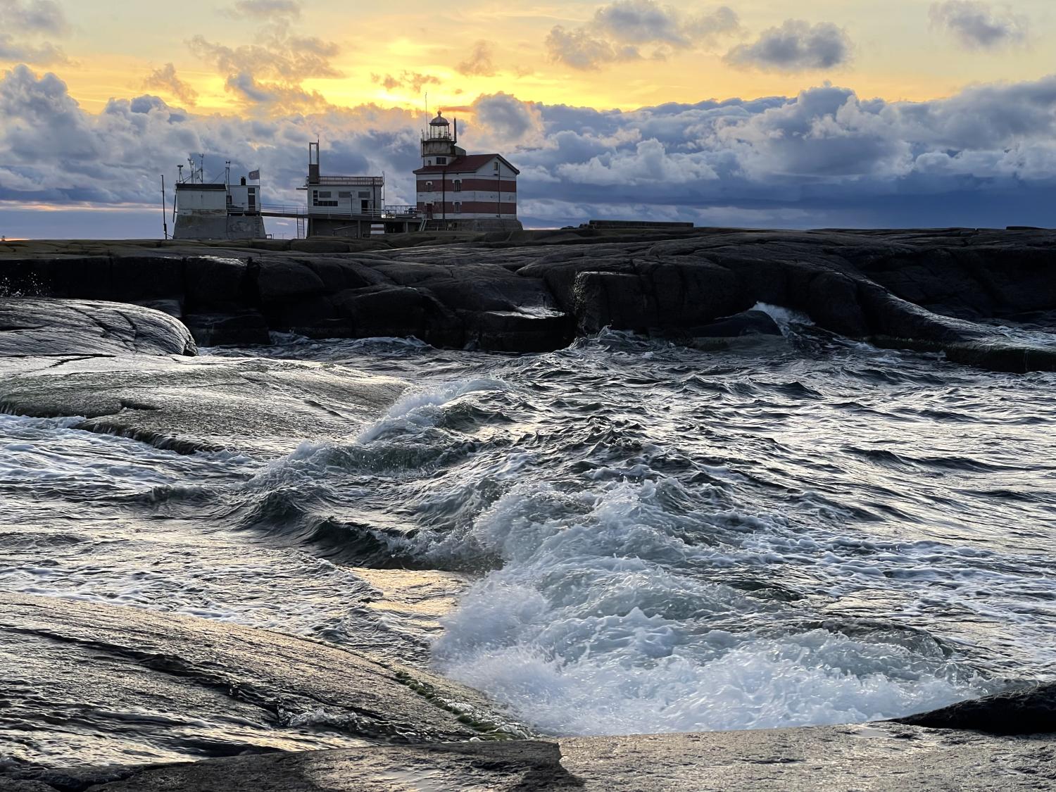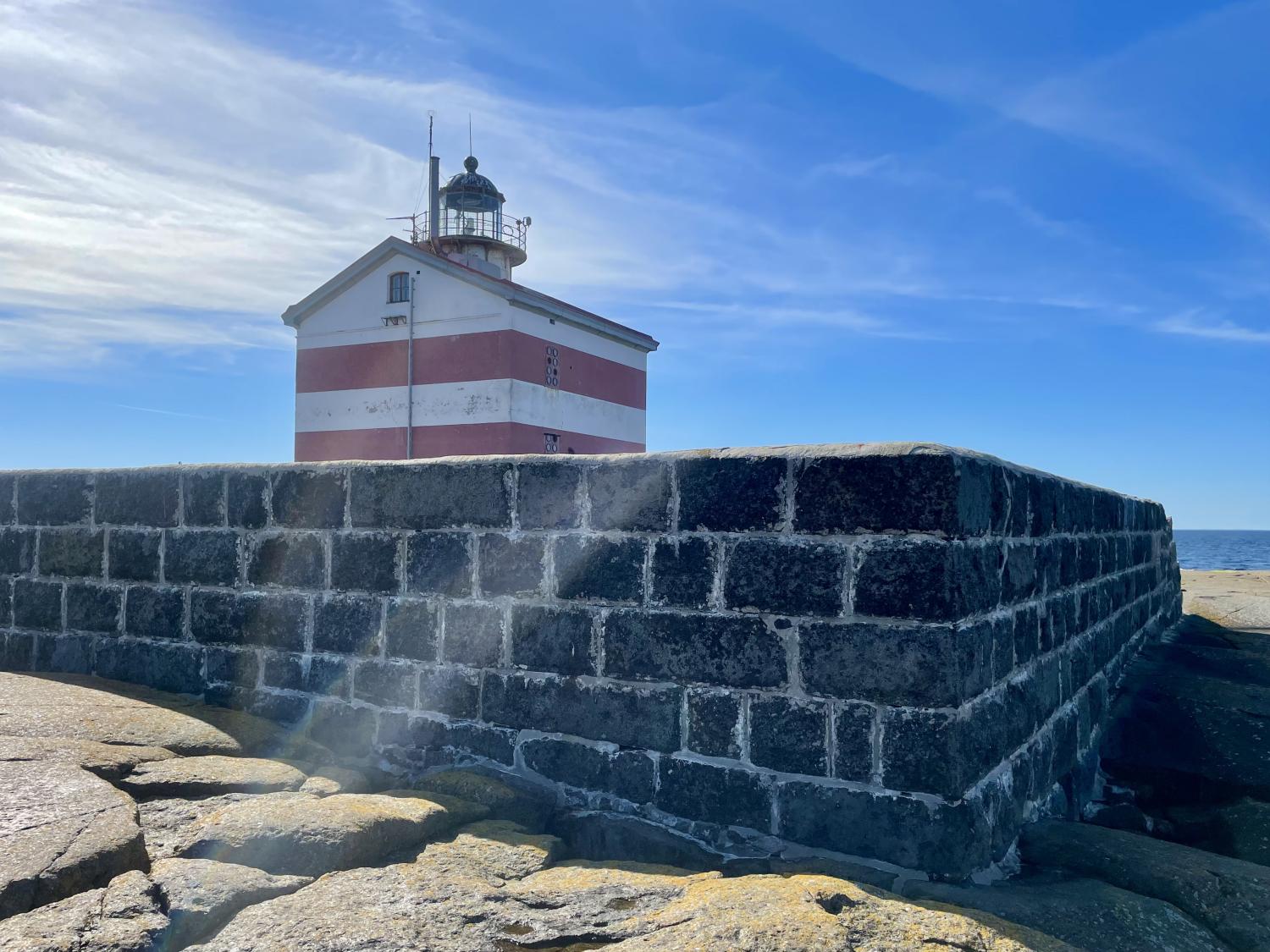 Pricken vid horisonten blir större. Det är Märkets fyr, jag känner igen den. Fortsätter surfa.