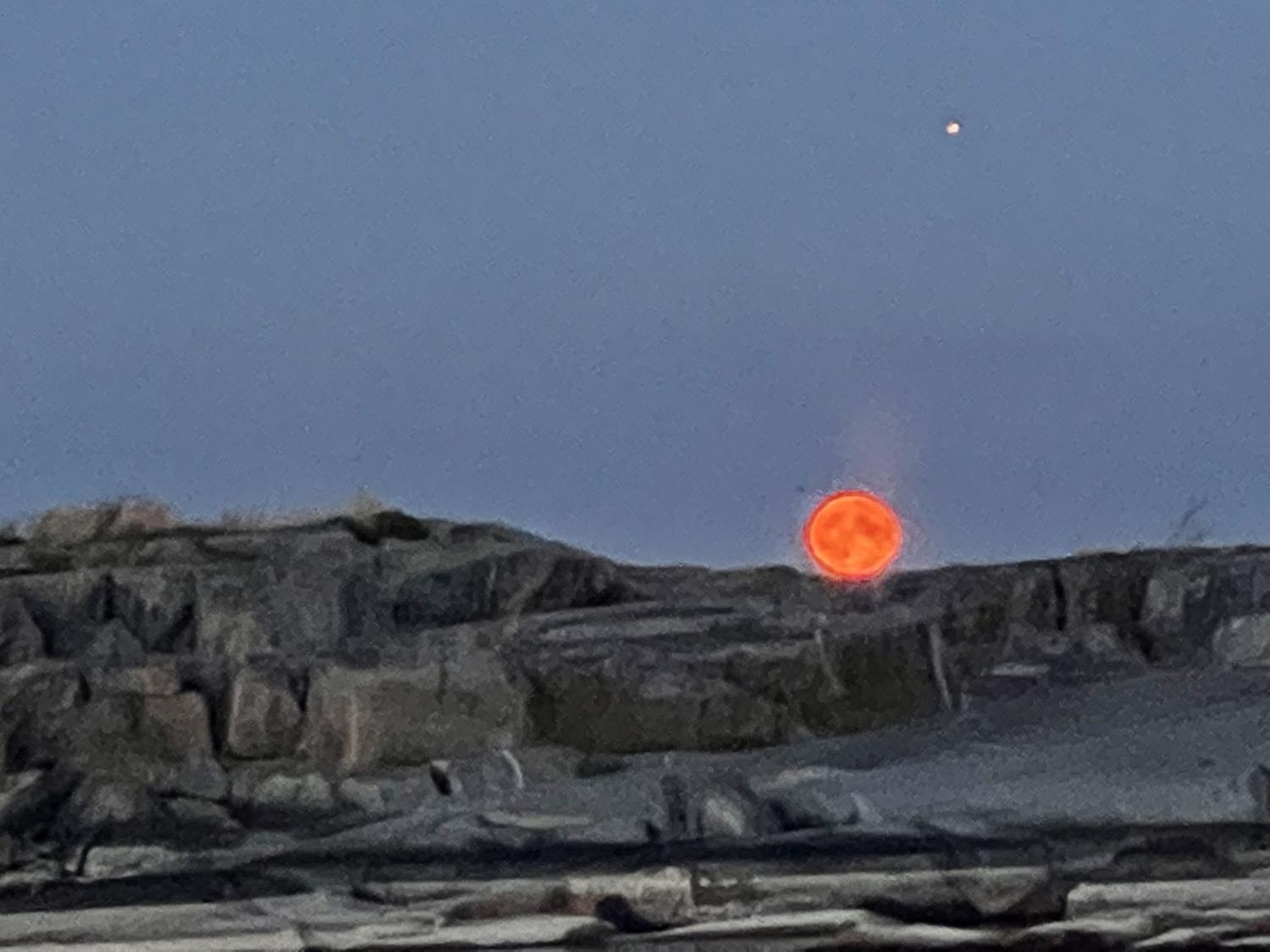 Än en gång stiger månen upp ur havet precis när solen gått ned.