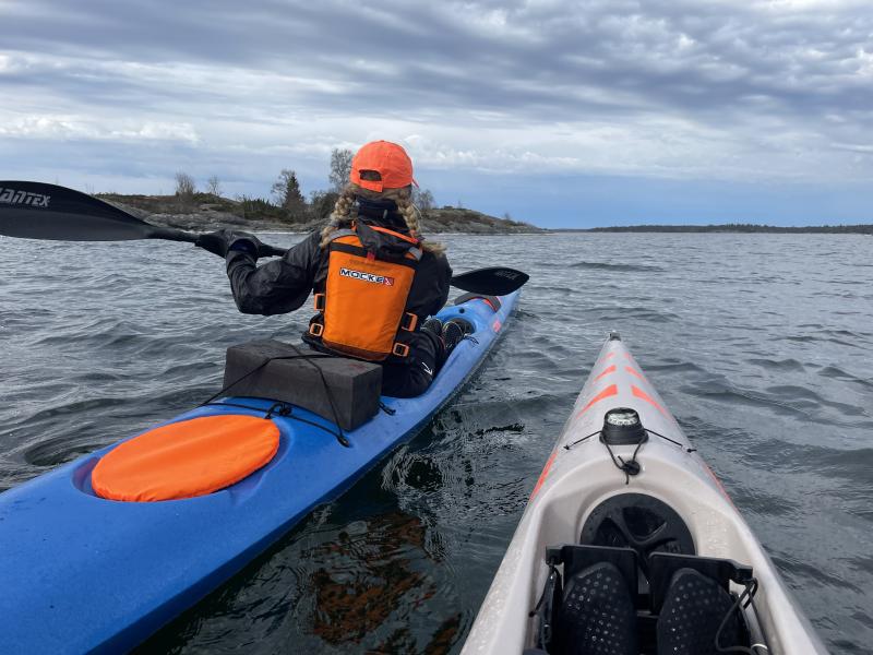 Dessa shorts har jag utanpå Reedbyxor kalla dagar för att täta kring midjan och för att hålla rumpan varmare. För det mesta har jag Nelo glidshorts utanpå eftersom de är halare mot sitsen. Personligen gillar jag inte att paddla i neoprenekläder närmast huden eftersom de brukar läcka i sömmarna.
