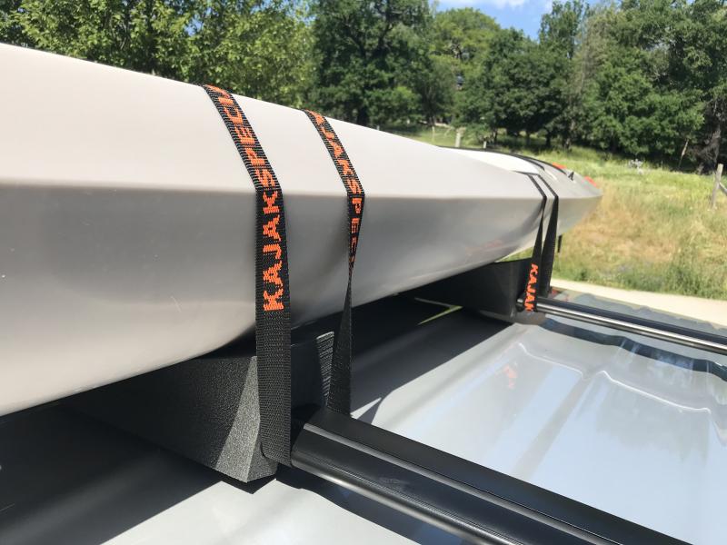 Spänn förslagsvis fast surfskin / kajaken på hållarna med Kajakspecialistens smidiga och skonsamma spännremmar med specialspännne (ingår ej).